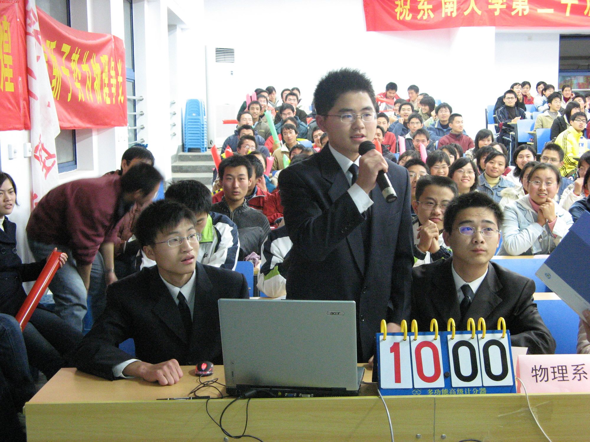 决赛中物理系多数同学到场为参赛人员加油助威,物理系骄子不负众望沉着应答、机智果断,最终获得三等奖。