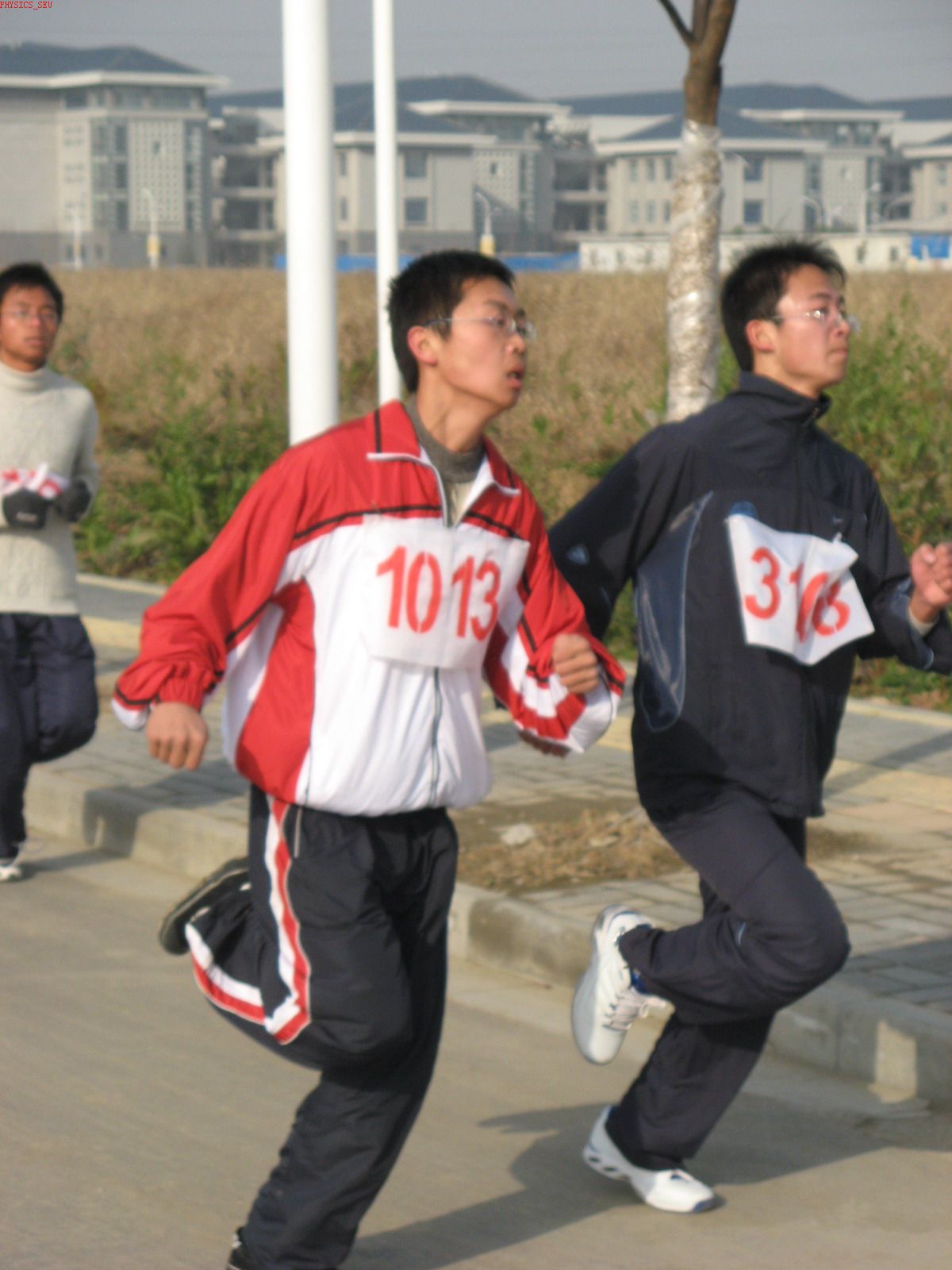 长跑过程中,物理系同学勇于拼搏,一路激昂,坚持跑到终点,顺利完成本次活动要求.其中刘朝阳同学取得长跑竞赛组第十名的好成绩.