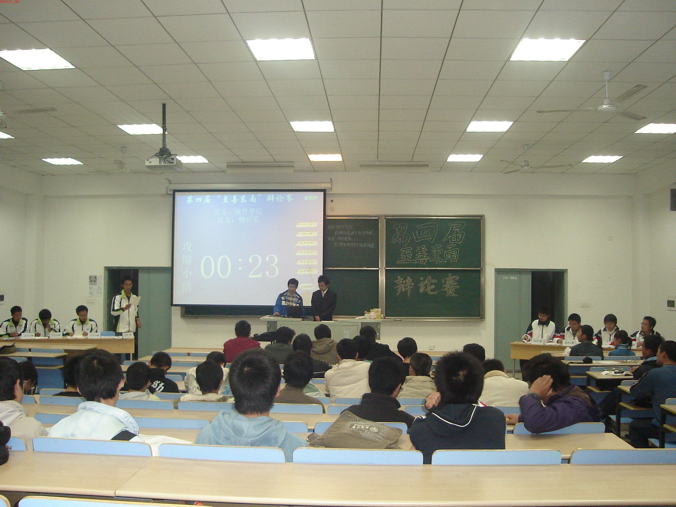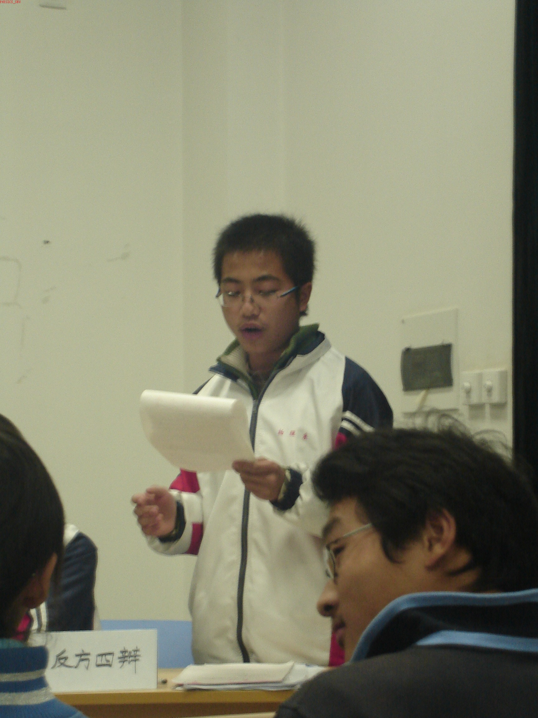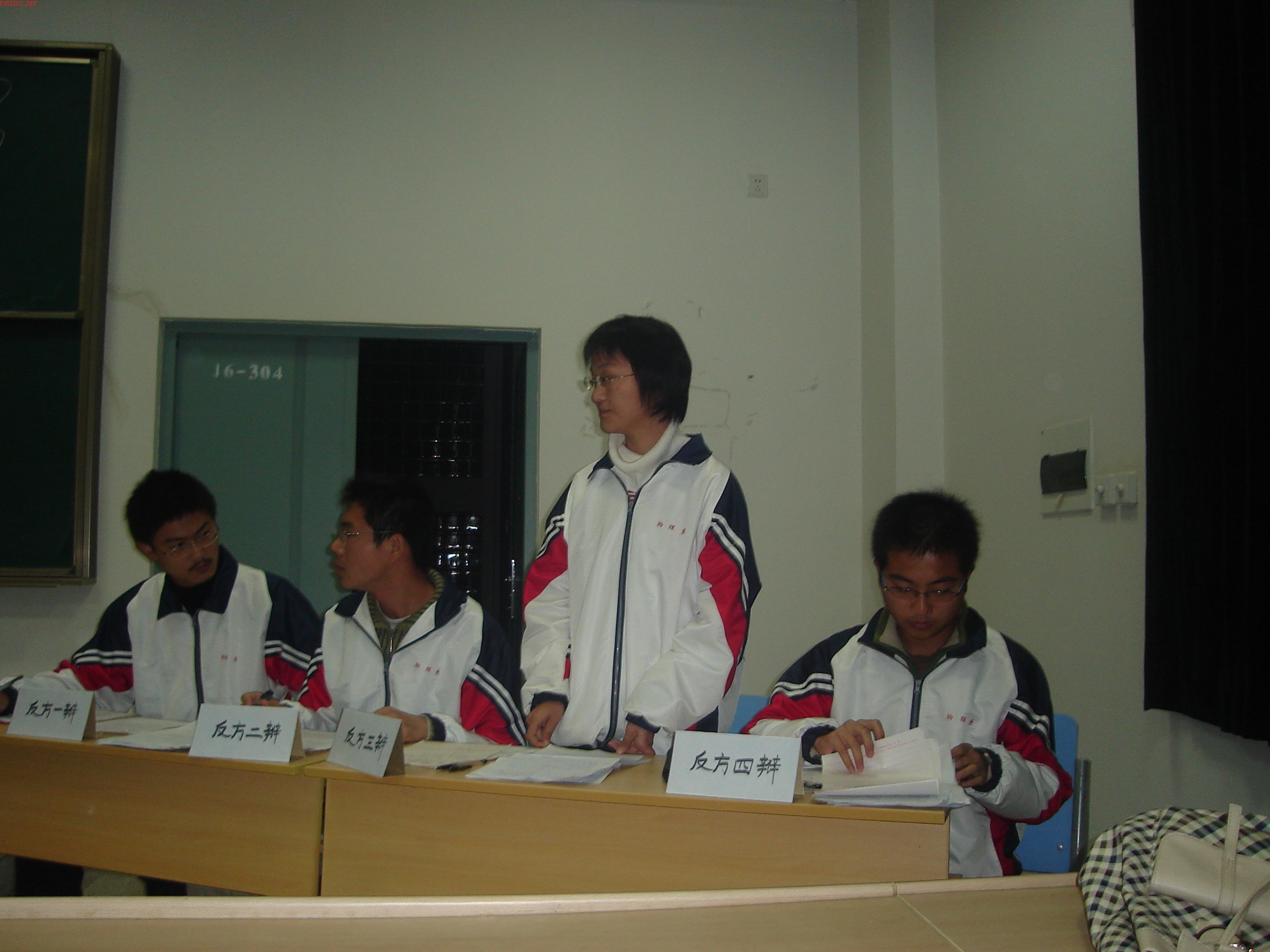 这次上场的参赛选手有:一辩 杨浩,二辩 季诚,三辩 伊梦茜,四辩 骆浩。我们的对手是软件学院。比赛的辩题为“纪律会促进个性发展还是会限制个性发展”。我们作为反方,观点是“纪律限制个性发展”。比赛过程中,正反方旁征博引,条理清晰,思维敏捷,交锋激烈。我们系辩手更为精彩的发挥给物理系带来了最终的胜利,同时骆浩当选本场最佳辩手。这次胜利的背后有场下我们系同学热情的掌声,也有杨浩同学带着高烧上场的顽强精神,真诚地感谢你们!