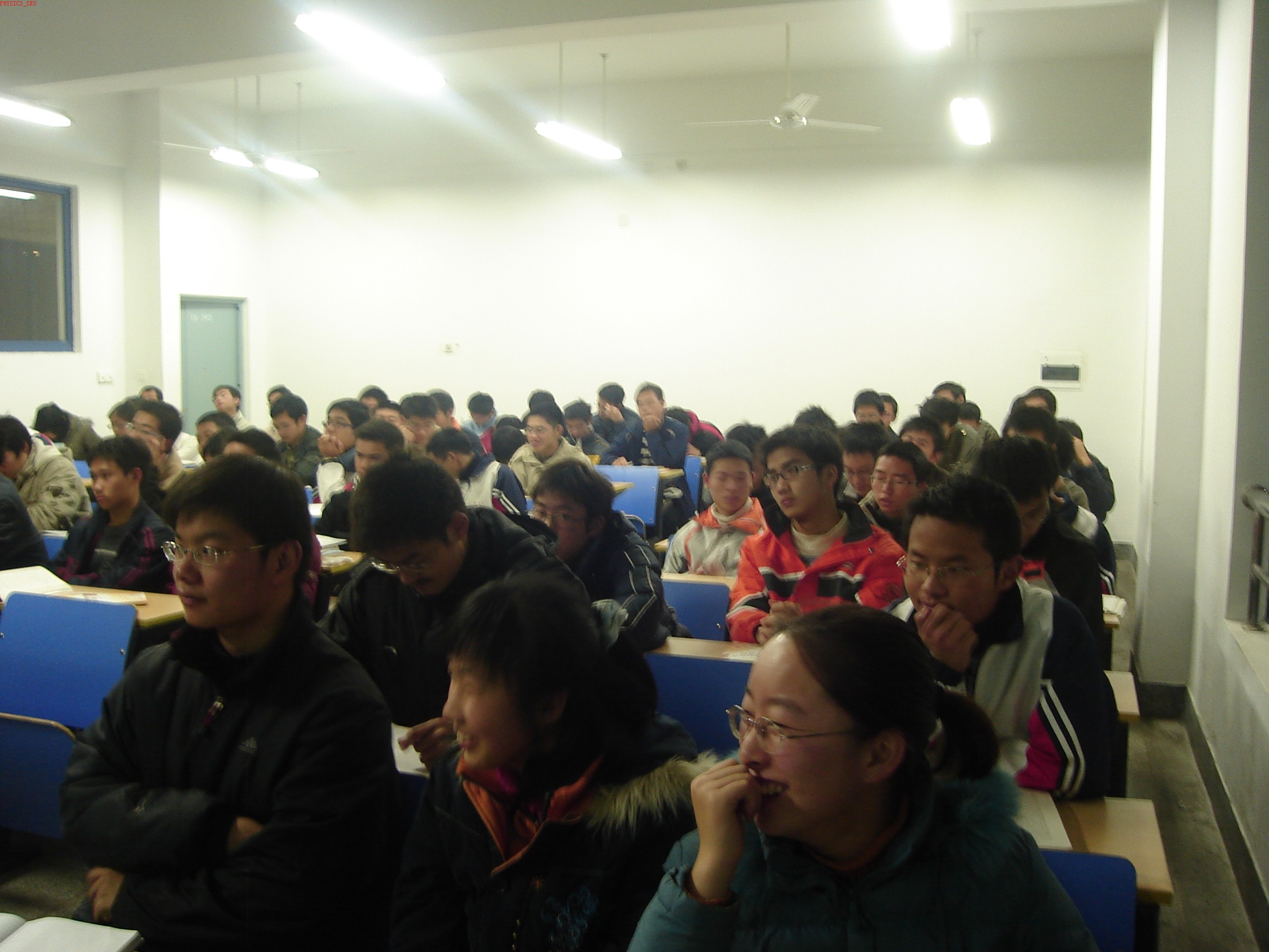 2007级新生入学近一个学期,临近期末,紧张的复习迎考阶段即将到来,但是一部分新生对大学教师快节奏的讲课方式时难以接受,难以及时理解消化知识。长时间的问题积累给同学们带来了心理上的压力。为了及时的解决这些问题,让新生尽快掌握较科学的学习方法,调整好心态,积极地适应大学学习生活,1210日下午我们学生会组织安排了学习经验交流会。