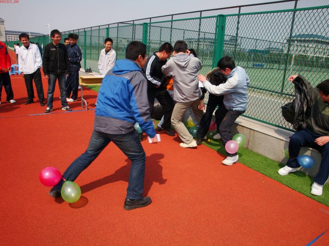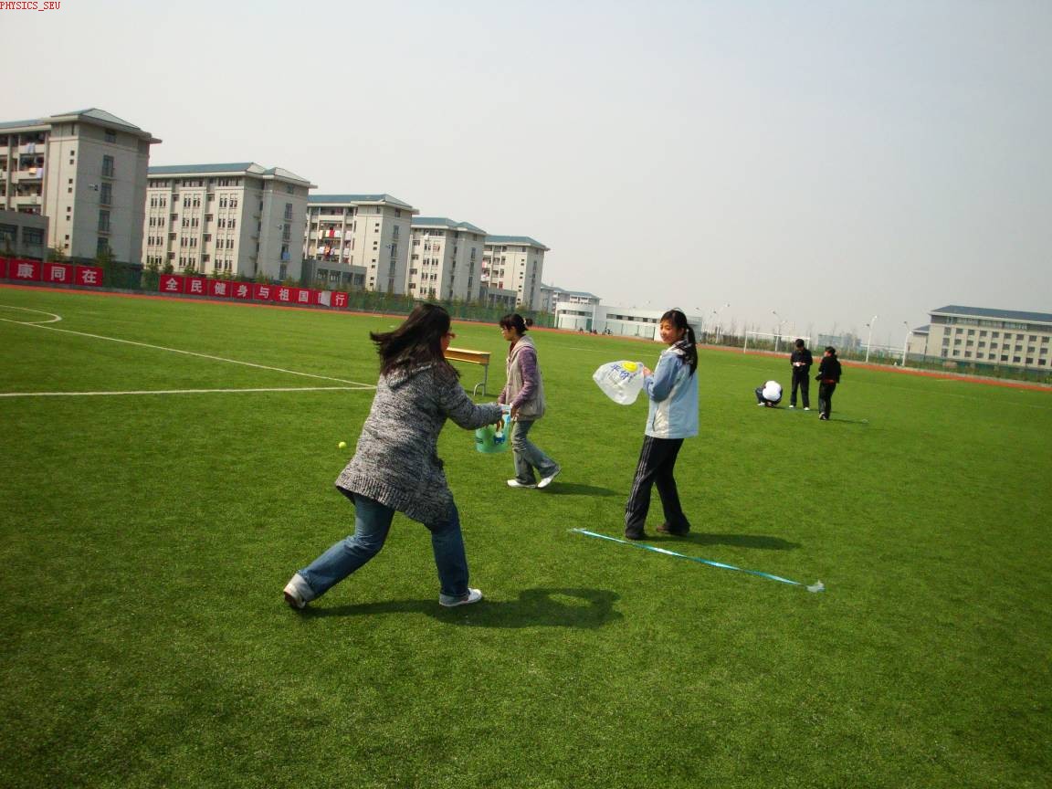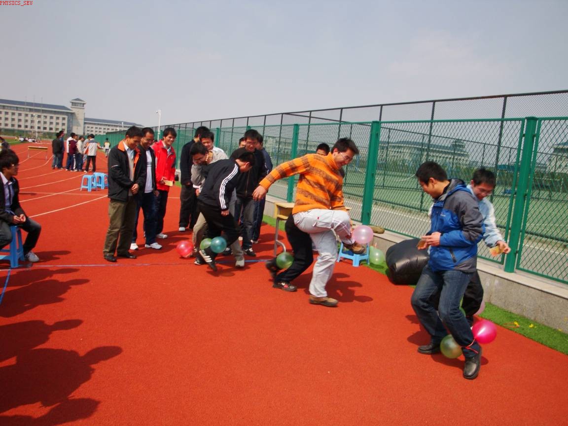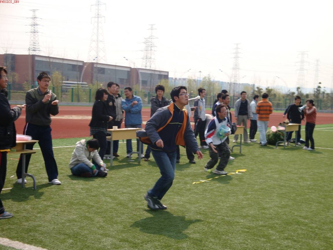 4月1日中午,在橘园运动场举行了物理系09年趣味运动会,本次活动由物理系主办,系团委学生会承办。活动紧紧围绕物理系本科生导师制的推广与完善进行,邀请各宿舍的导师参加,旨在增进师生之间的交流与沟通,促进导师制更快更有效的发展。系党委副书记章荣琦老师,各年级班主任及导师代表出席了运动会的开幕式。