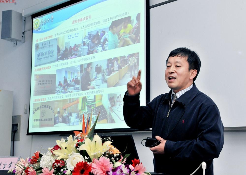 12月1日下午2点,考察组来到我校九龙湖校区田家炳楼,首先由郑家茂副校长做“构建立体开放的实验教学体系,打造‘做、学、研’相结合的创新实践平台”的专题报告,向考察组介绍了3522vip浦京集团官网实验教学改革与实验教学示范中心建设总体情况;接着,物理系系主任兼物理实验中心主任杨永宏教授汇报了物理实验中心改革与建设情况。随后,考察团在物理实验中心副主任戴玉蓉、孙贵宁老师的带领下分两路参观了物理实验中心。物理实验中心近几年的建设成果,如分层次、模块化的实验教学体系,物理实验课程“多重交互”教学新模式(该成果获得2009年国家教学成果一等奖),以及国家级实验课程教学团队等给考察团领导们留下了深刻印象。