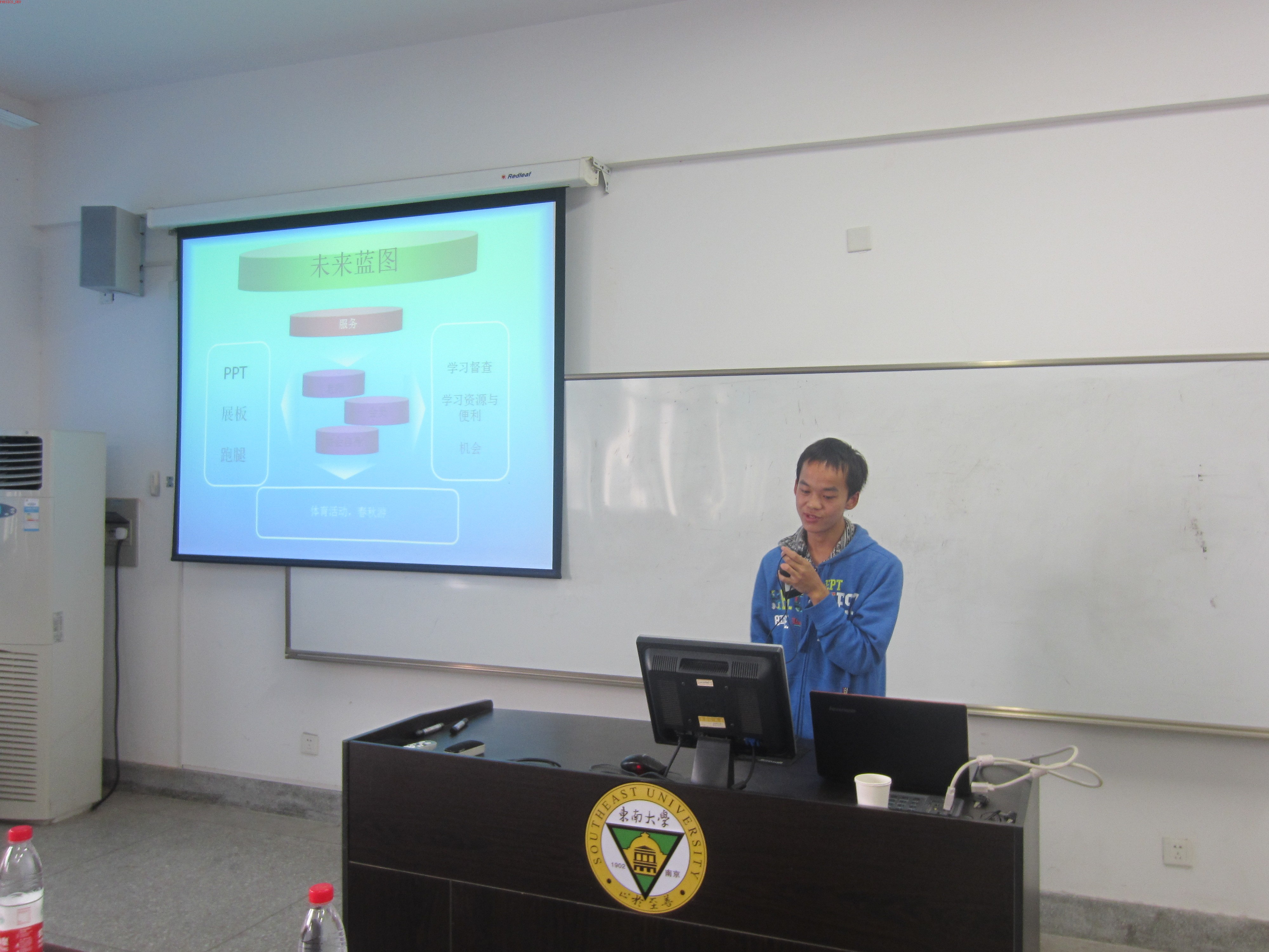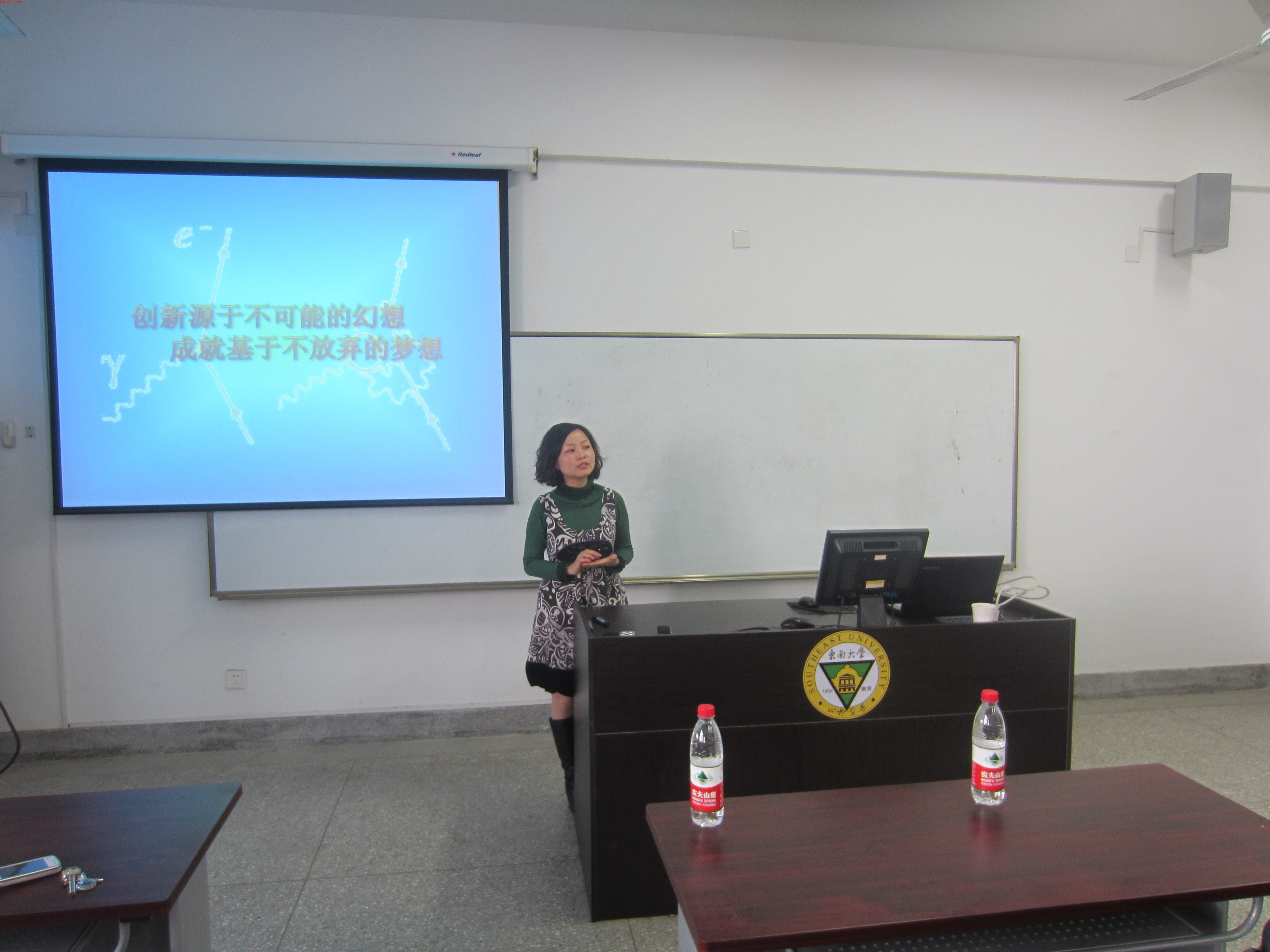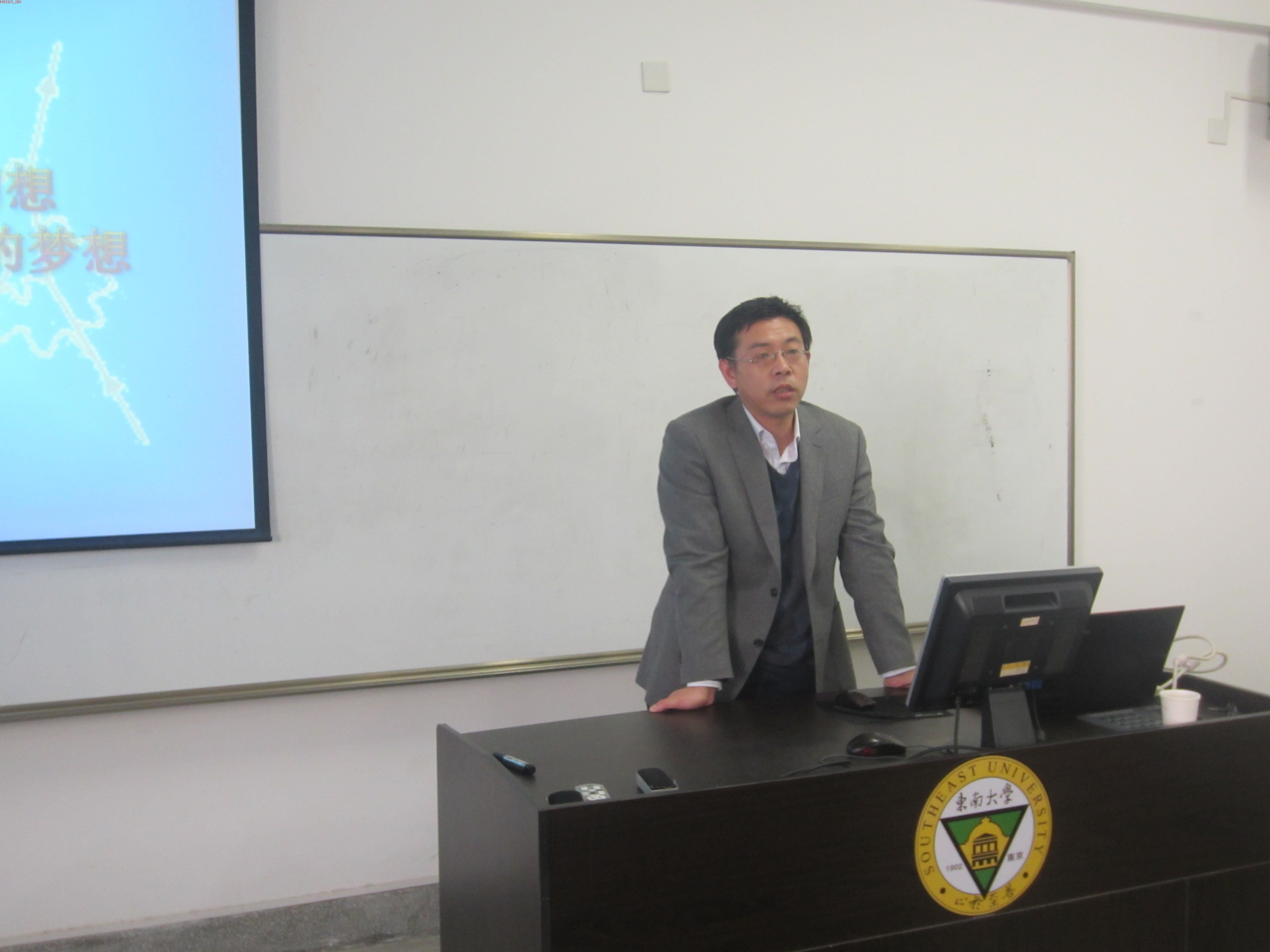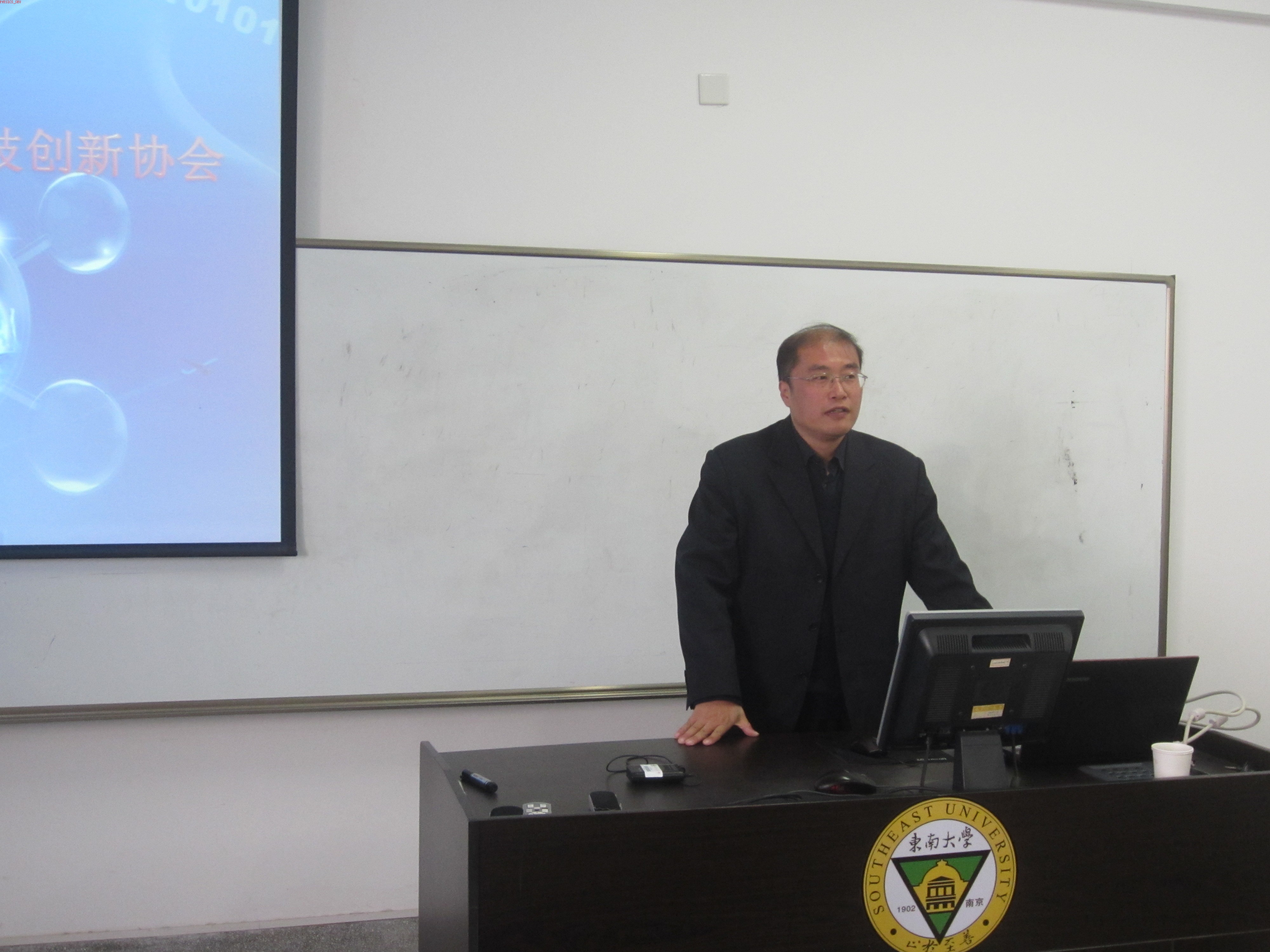 启动仪式由科协组织部长罗正位同学主持。首先由系党委副书记兼副系主任裴锋老师发表了讲话,裴锋老师总结了东大科技类社团的发展概况,表达了对我系科协的热切期望。接着,我系科协会长向仟飞同学详细介绍了科协的发展目标、人员机构组成、前期策划、工作展望、发展规划等内容,强调要把科协创办成一个服务性的学术社团,服务于会员、教师和广大的同学们。随后,系主任杨永宏老师为系科协启动致辞,他高度肯定了科协对于物理系本科生科技创新能力培养的重要性,也表达了自己的殷切期望。然后,副系主任兼物理实验中心主任戴玉蓉老师发表讲话,她赞扬了向仟飞同学详实可行的协会发展报告,对协会的发展寄予了厚望。最后科协启动仪式在一片热烈的掌声中圆满结束。