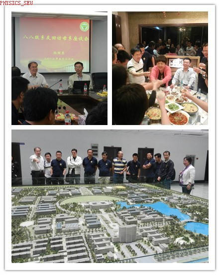 校友们19日在市区里专门看望了已退休的原班主任谈漱梅老师、原系党委书记冯佩霞老师、原系主任、任课教师黄洪斌老师等。20日上午,在行政楼观摩了新校区的布局,环绕新校区一周后,兴奋激动的校友们来到了系馆――田家炳楼南楼205室和在校师生代表会面座谈。杨永宏主任回顾了当时为该届校友上课的教师情况,结合自身在南京大学校庆前一日与同届同学聚会的感想,共同印证了物理专业“宽口径、人才发展百花齐放”的特点。校友们一一做了自我介绍,并结合在校学弟、学妹们提出的问题,谈了自己的体会,深刻的见解和殷切的关爱之情让师生们颇为动容。年级联络人、东软集团股份有限公司华东大区副总经理王光辉校友认为“回头来看物理专业对人的培养,可以说是方法很重要,这是他从自己经历写代码、做架构、进行整体设计、直至目前负责区一级的管理中总结出来的”;苏州大学电子信息学院陆武民校友指出“适应社会要有两种能力,一是发现问题的能力,二是解决问题的能力,这两种能力的实质就是方法论,在理科专业培养背景下,要能够在踏入社会后与企业相结合才行”;北京大学光华管理学院韩育红校友戏称自己是物理学的最不好的,但后来竟然在博士毕业后回国做教师,他认为在大学里有几点很重点,一是多看书,二是注意和同学朋友的交往,提升沟通表达,还有就是要在比较中进行训练;在上海从事自由职业的黄勇刚校友谈到自己一直秉持“想干什么、干什么”的理念,深受人文方面的影响,认为一要考虑兴趣,因为它可以长期驱使,二要思考怎么样过的快乐,他还以自己曾先后在电信局工作,最早一批从事保险业务,现在经常变换、自由择业等畅谈了自己的心路历程,最后还分享了自己长期坚持锻炼,保持身体健康的感悟,以及作为一位旅游登山爱好者,去过世界的很多地方,最近更是准备登顶珠峰的打算;爱立信(中国)通信有限公司大中华及东北亚区供应总监付凯校友结合自己招聘大学毕业生的体会,指出面试是测试应聘者的表达、信心以及团队合作能力;在美国从事投资业的张文一校友也指出,回顾自己的工作历程,就是学习和掌握人与人之间如何交流,特别是在团队中工作;广东肇庆学院计算机学院教授邵平校友等也介绍了自身的多样经历和对高校教育的看法。