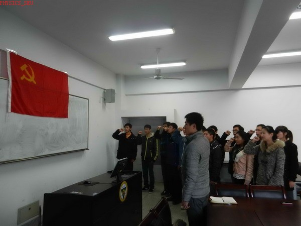 预备党员代表,已免研并被选为2013年流动助教的罗正位同学用丰富的图片回顾了“一二・九”爱国运动的历史场景,2012级研究生班班长葛晓鹏同学从马列主义传入中国直至共产党带领中国人民建设了一个欣欣向荣的社会主义国家,以长段的历史脉络抒发了对党的认识和看法;2009级刘鹤佳同学也从分析外国教授的客观评价表达了对党的领导和国家发展的信心,其他预备党员也一同就青年学生的使命,如何看待党面临的问题交流了看法。裴书记在活动最后要求大家自觉加强理论武装,特别是认真学习领会十八大精神,在各方面发挥好模范带头作用。