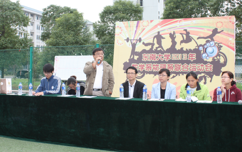 2013年10月19日,2013年数学系物理系联合运动会在3522vip浦京集团官网九龙湖校区梅园体育场正式举行。下午12点50分,物理系和数学系的运动员和同学们在梅园操场上集合完毕,运动会开幕式开始。参加运动会开幕式的嘉宾有:物理系党委书记王勇刚、物理系党委副书记潘勇涛、数学系党委副书记曹海燕、两系团委书记、辅导员等领导和老师。