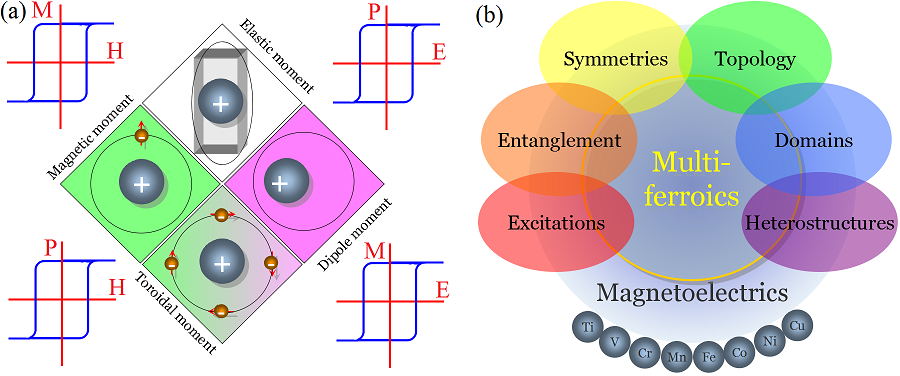 董帅教授撰写的该长篇评论性文章,在简要回顾多铁性研究工作历史后,着眼基本概念,从纠缠态、激发态、对称性和拓扑性四个方面阐述磁性材料中各类铁电性质、物理内涵及相关物理新效应;归纳了当前多铁性材料的分类,逐一阐述物理机制,并介绍了磁电耦合在薄膜和异质结中的实际应用,生动演示了如何从基础科学理论一步步发展到实际器件的研制;该文最后讨论了磁电拓扑学中的相关前沿问题。