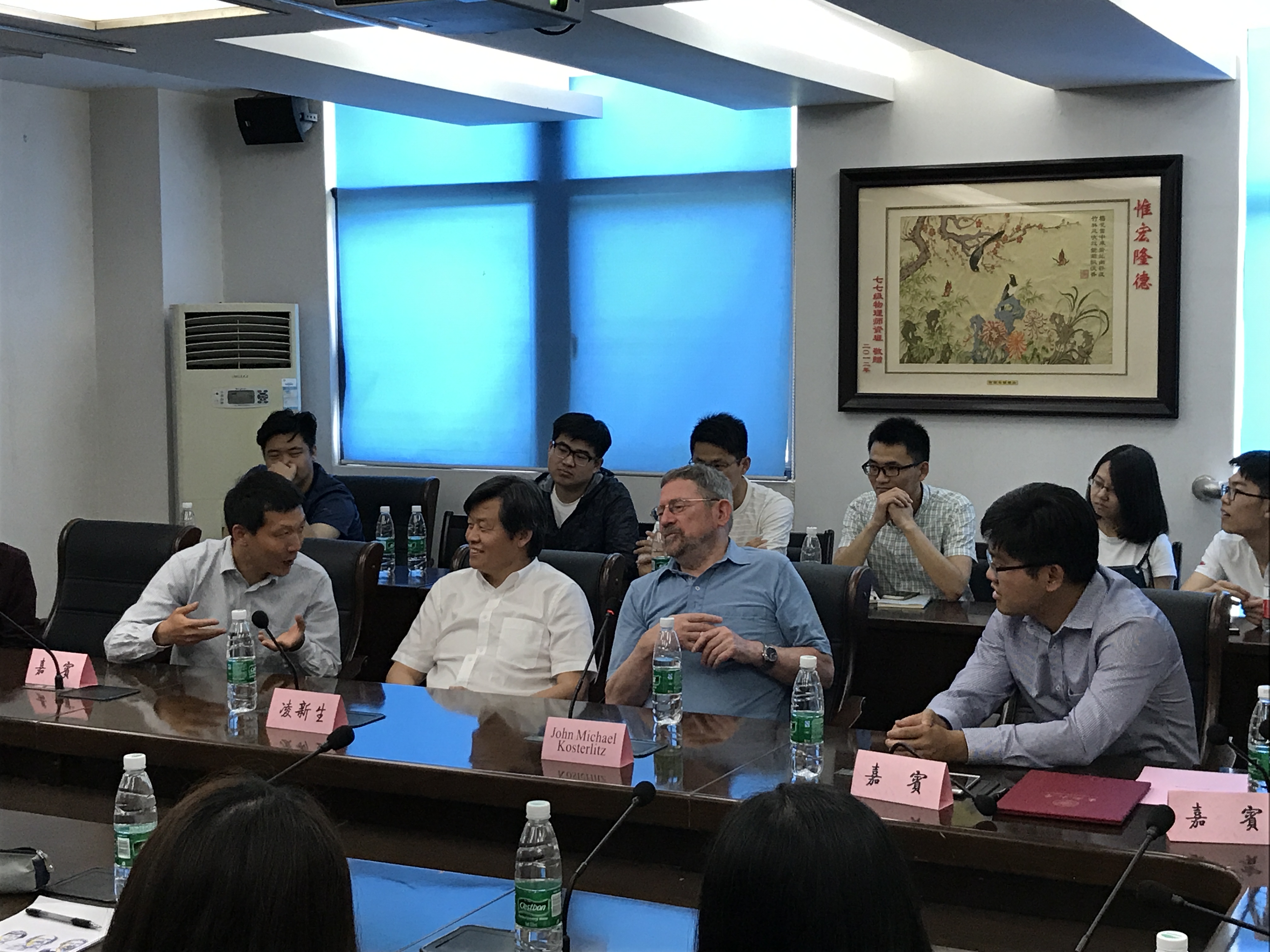 5月24日上午9点30分活动于九龙湖校区J3105报告厅正式开始,活动的第一环节首先由主持人介绍到场嘉宾,其中包括3522vip浦京集团官网副院长倪振华教授,3522vip浦京集团官网董帅教授,机械工程学院凌新生教授等。其次主持人为现场听众介绍了Kosterlitz教授的主要个人履历以及他研究生涯中所获奖项,令现场听众深刻地感受到了Kosterlitz教授的科研之路的充实与辉煌。活动的第二环节主要由教授为全校各系师生作了一场主题“Topological Order and Defects ,and phase Transitions in Two Dimensions”的报告,报告主要围绕其研究生涯展开,具体讲述了科研历程中的重要节点以及成功的关键因素,充分展现了诺贝尔奖得主的个人魅力。