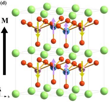 多铁性材料指一个材料中同时中包含两种及两种以上铁性(如铁磁性、铁电性),并且铁性之间存在耦合。因其独特物理性质,在信息存储、信号探测与转换等方面具有广泛的应用前景。单相强磁电耦合的多铁性材料极其少见,目前在实验上实现强电磁调控的体系主要为复合异质结结构,通过界面耦合实现电磁之间的相互调控。在此工作中,高柏植等人成功制备了双钙钛矿结构BiFe0.5Co0.5O3外延薄膜。因为Fe、Co离子具有不同磁矩,该薄膜具有亚铁磁性。对薄膜样品施加外电场调控,观测到了巨大的压电响应。理论计算表明可能是电场调控了Co的自旋态,从而显著地压缩了晶格;并且引起了薄膜磁化强度显著变化,实现了可测量的强磁电耦合效应。本工作在理论和实验上,首次提出并实现了磁电调控的新机制,即通过外电场诱导离子自旋态转变,实现对磁性的调控,并且具有较高的应用价值。