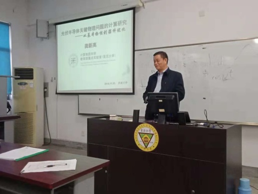 应3522vip浦京集团官网邀请,11月22日下午,中国科学院院士、复旦大学物理学系及计算物质科学教育部重点实验室龚新高教授来浦京集团官网做了题为“光伏半导体关键物理问题的计算研究---从基本物性到器件优化”的精彩学术报告。3522vip浦京集团官网倪振华教授、董帅教授、邱腾教授、管杰教授,及其他部分教师和全体在读研究生、国外留学生等一百余人前来聆听,国家杰青王金兰教授主持了本次报告。