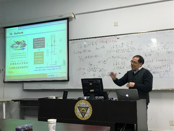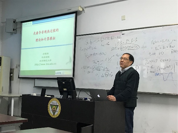 1月9日下午,中国科学院院士、北京师范大学方维海教授应邀来浦京集团官网做了题为“光诱导非绝热过程的理论和计算模拟”的精彩学术报告。3522vip浦京集团官网部分教师和在读研究生等聆听了报告,并就报告内容展开了热烈的讨论,王金兰教授主持了本次报告会。