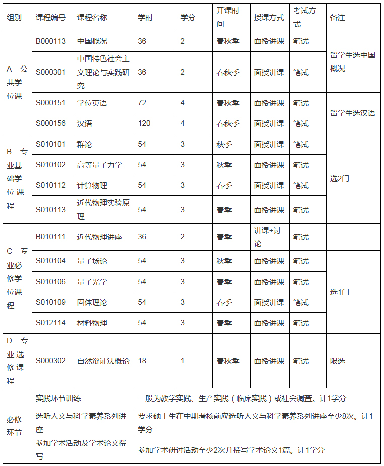 Ø“物理学”硕士生培养方案