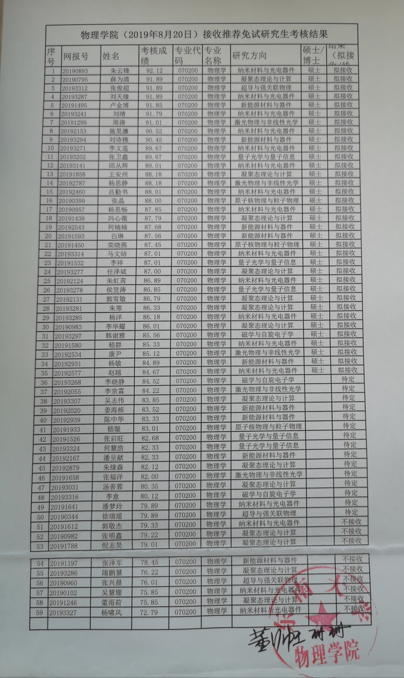 3522vip浦京集团官网(2019年8月20日)接收推荐免试研究生考核结果