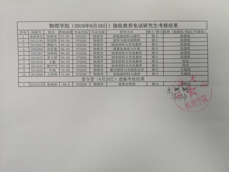 3522vip浦京集团官网2019年9月18日接受推荐免试研究生考核结果