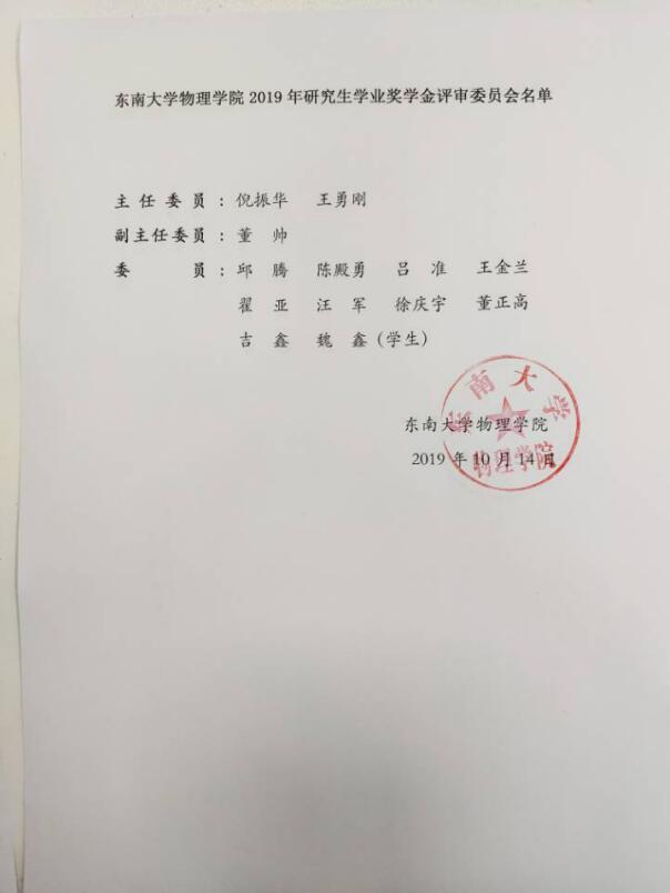 3522vip浦京集团官网2019年研究生学业奖学金评审委员会名单