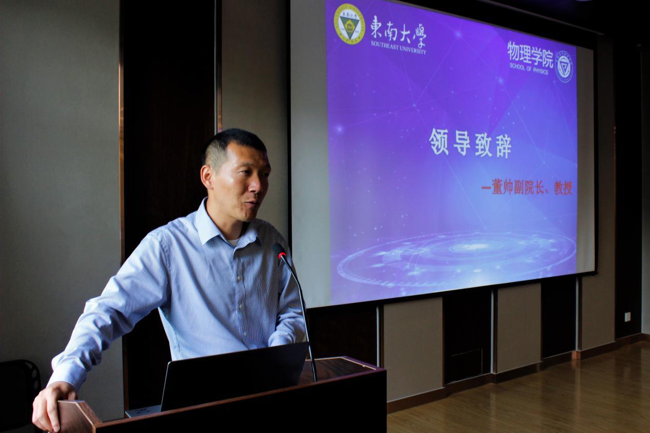 理学院副院长董帅教授为本次论坛致开幕词。董院长强调要响应国家号召打破唯文章论,结合自身学院开展多方面,多方位,多角度的奖励机制,并结合国家奖学金参评。同时鼓励我们不仅要做出来,而且还要讲出来,把科研完整的,漂亮的转化为一个故事让各个领域的人都能够听懂,都能够明白。董院长阐明了浦京集团官网开展学术论坛的意义,不仅给广大科研人员提供一个交流平台,更能够活跃学术思维,激励学术创新。