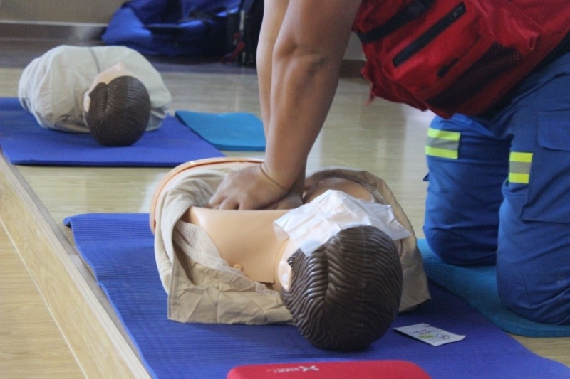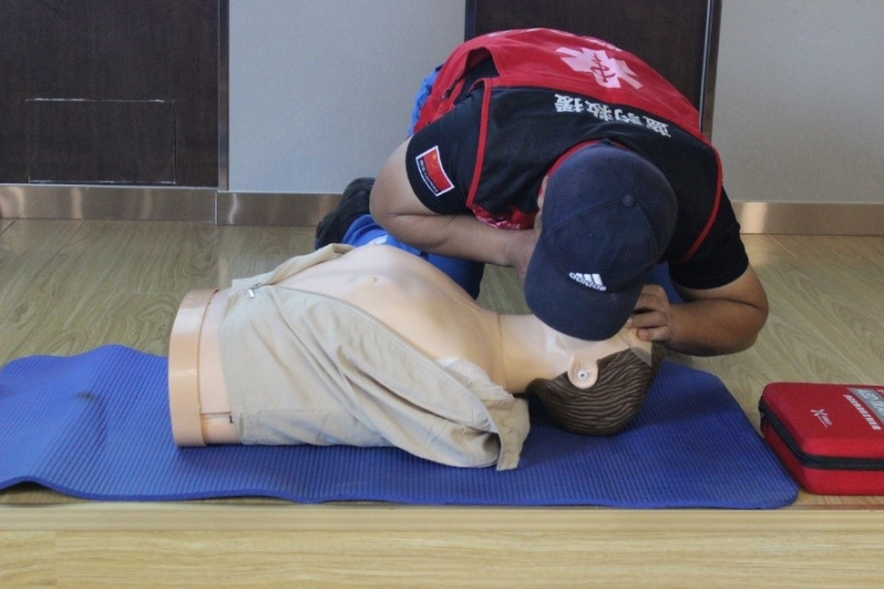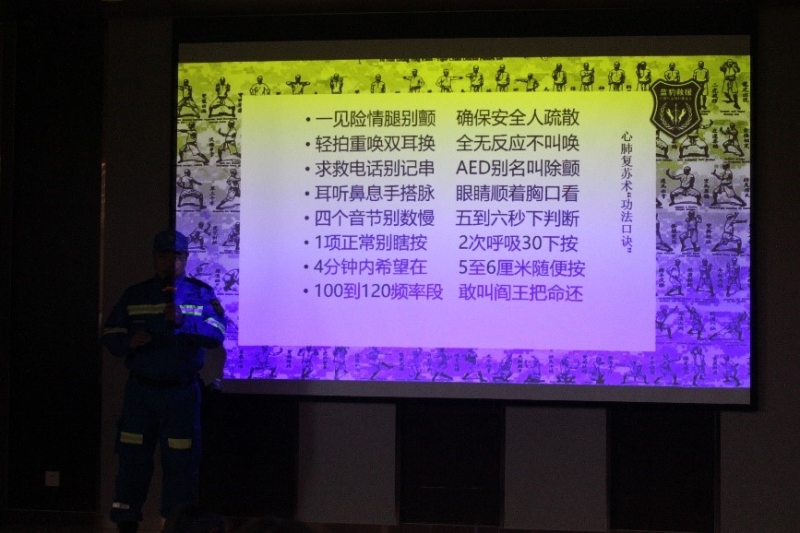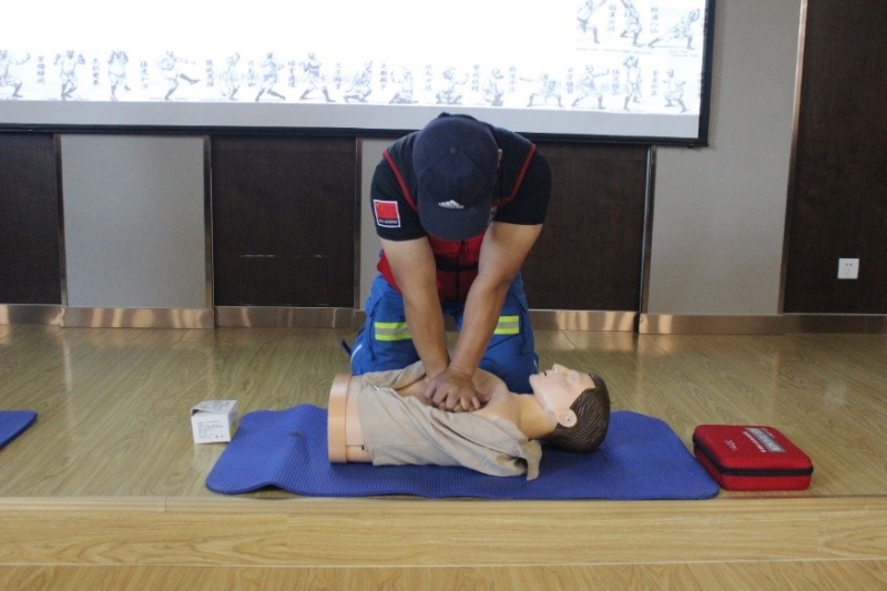 教官亲自给大家示范遇到险情时的具体步骤,包括安排拨打求救电话,AED除颤,心肺复苏和人工呼吸等。演示结束后大家依次体验了遇险急救的动作要领并纠正了一些错误姿势,大家积极踊跃上前操作,在一次次的实践中锻炼了自己的应急意识和急救能力。