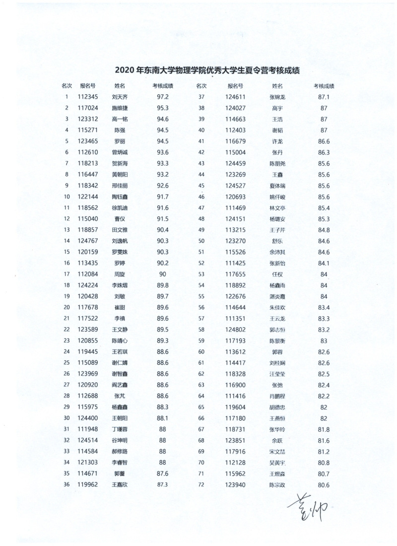 2020年8月3日3522vip浦京集团官网优秀大学生夏令营考核成绩