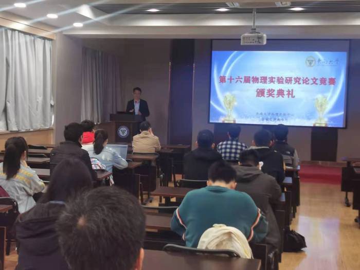 4月21日中午,由物理实验中心和教务处主办的“3522vip浦京集团官网第十六届物理实验研究论文竞赛”颁奖典礼在田家炳楼平星报告厅举行。3522vip浦京集团官网党委书记潘勇涛、物理实验中心党支部书记袁士俊、物理实验中心主任陈乾以及物理实验中心副主任黄兆聪等应邀出席颁奖典礼。
