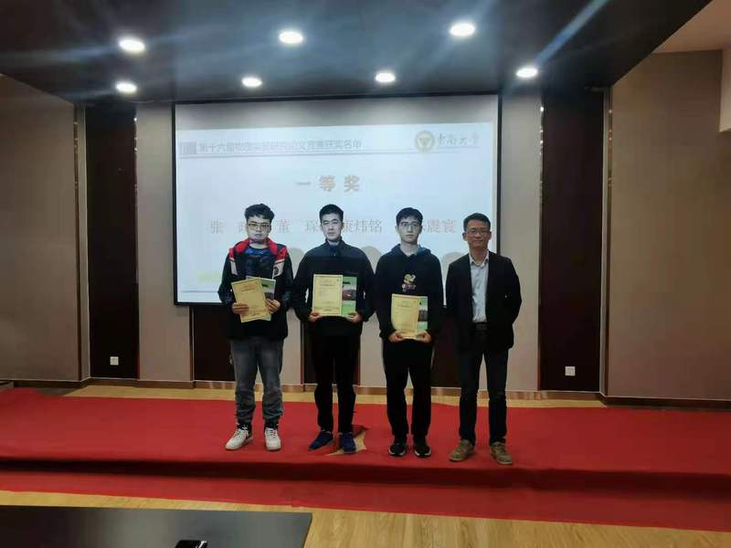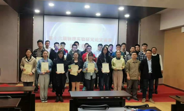 然后由物理实验中心支部书记袁士俊、主任陈乾和副主任黄兆聪为获得二、三等奖的同学颁发了获奖证书和论文集。