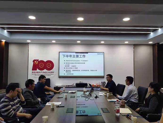 物理实验中心、大学物理教研中心、物理系、应用物理系主任依次从日常教学、师资建设、学科建设、人才培养和科学研究等方面汇报了2021年上半年的工作成绩,分析上半年工作推进过程中存在的问题、难点及其原因,针对这些问题提出下半年的工作方向。学院党政领导、各系(中心)主任还围绕如何推进“课程思政”建设,如何优化学院治理体系、如何促进治理能力现代化进行了深入探讨。
