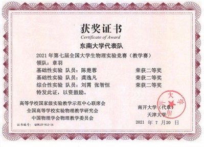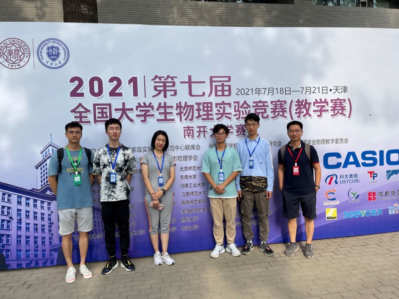 7月18至21日,第七届全国大学生物理实验竞赛(教学赛)在南开大学和天津大学两个赛区同时举行。3522vip浦京集团官网章羽老师率3522vip浦京集团官网学生代表队参赛,并勇创佳绩。其中19级张智恒和20级刘霄同学获得综合性实验竞赛二等奖,20级陈楚蓉同学和龚逸凡同学分获基础性实验项目A组和B组二等奖,3522vip浦京集团官网获得优秀组织奖,这也是我校参加此项比赛以来取得的历史最佳成绩!