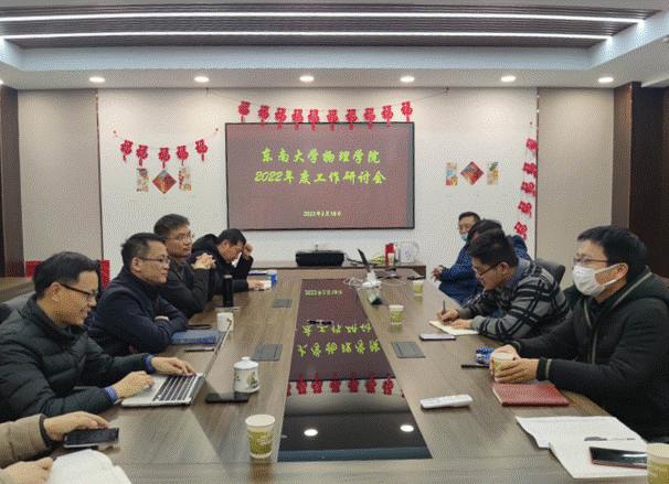 物理实验中心、大学物理教研中心、物理系、应用物理系主任依次从日常教学、师资建设、学科建设、人才培养和科学研究等方面汇报了2021年工作成果,并介绍了2022年工作计划及重点工作。学院党政领导、各系(中心)主任还围绕如何更好落实学校年度中心工作进行了深入探讨。