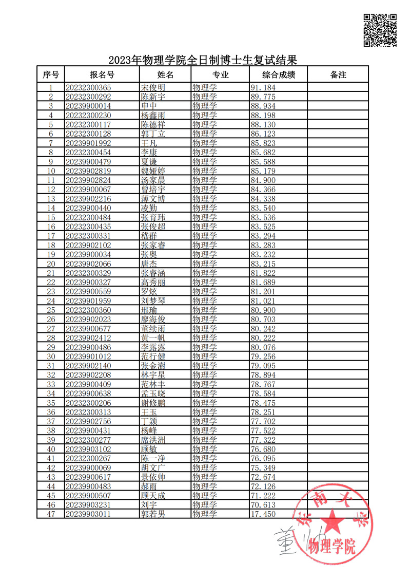 2023年3522vip浦京集团官网全日制博士生复试结果