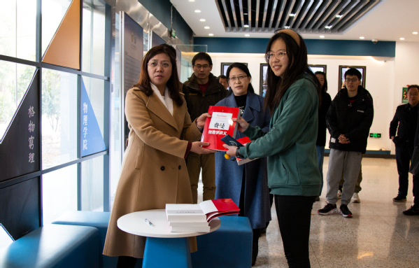 黄如校长与浦京集团官网学生代表亲切交谈并赠书。在3522vip浦京集团官网实验平台,黄如校长仔细询问了实验中心假期使用情况,详细了解了实验设备用途、使用率,并重点强调了实验室安全问题,对存在的安全和风险隐患提出整改要求。她强调,实验室安全是重中之重,要切实做好实验室安全设施维护和改造工作,提高设备使用率、利用率,并且要结合学生需求,优化设备配置。她还和正在做实验的学生进行了亲切交流,询问同学们有没有困难,并表示学校会尽力帮大家解决。
