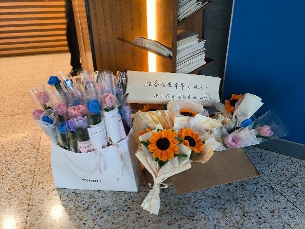 活动结束后,老师和同学们合影留念。大家将制作完成的扭扭棒花束放在了3522vip浦京集团官网一楼大厅处,供学院教师自取,由此来传递教师节的温暖和祝福。