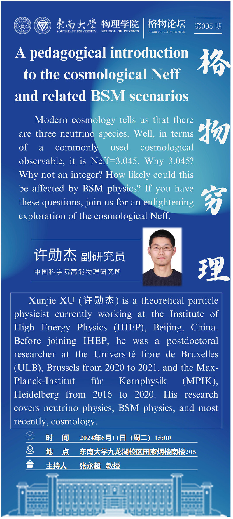 6月11日15:00学术报告|A pedagogical introductionto the cosmological Neff and related BSM scenarios