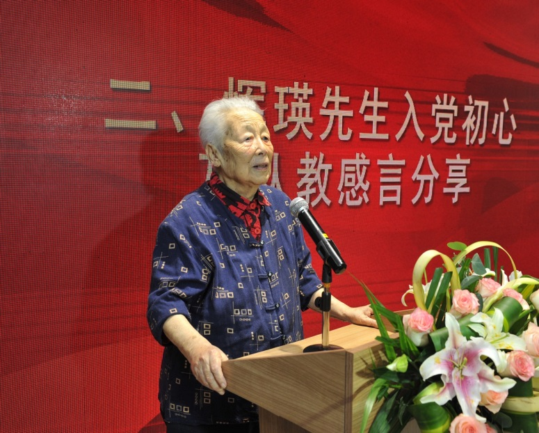 会上,恽瑛先生重返讲台,为大家带来了一场题为“入党初心与从教感言”的感人报告。她回忆起幼时受到帝国主义压迫的社会环境,新中国成立后发生的翻天覆地的变化让她认识到了只有中国共产党才能救中国,也萌生了加入党组织的愿望。后来,在党组织的帮助下,恽瑛老师于1956年光荣加入了中国共产党,这也更加坚定了她爱党、爱国、爱校的信念,明确了她做一个好党员、好教师的人生追求。在“师德师风”方面,她谈到,作为一名教师,既要爱学生,也要对他们严格要求。她认为教师就应该为学生的学习创造环境和条件,发挥学生的潜力,并且要去给学生搭建展示的平台。同时,她以自身为例,认为教师应该怀揣爱心和责任,用一生去创造和奉献。恽瑛先生还深情回顾了从教生涯中与世界知名物理学家、杰出校友吴健雄先生的交往,吴健雄曾给她的亲笔信中一句“身在国外,心怀中华”更是深深打动了她,让她备受感动和鼓舞。最后恽瑛先生说到,“今年是党的百岁生日,我应更加努力,在党的引导下,为教育事业奋斗终生”。