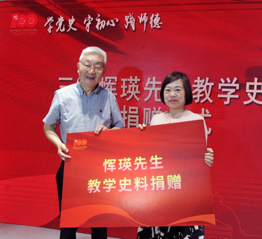随后,恽瑛先生将她珍藏数十年的亲编教材、音响资料、无数获奖证书、出访图片等一批珍贵的教学史料全部捐给学校。档案馆副馆长李宇青代表学校接受捐赠。校党委副书记、关心下一代委员会主任郑家茂为恽瑛先生颁发“3522vip浦京集团官网关工委工作突出贡献奖”,表彰她在教育学生、关心下一代工作中的突出贡献。